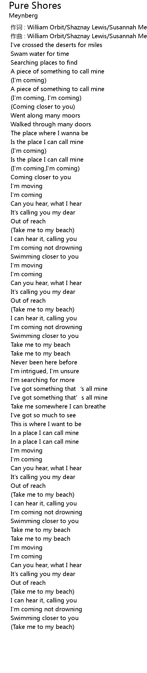 | 歌曲 | Pure Shores |