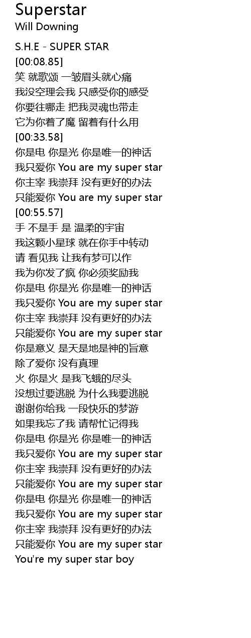 | [00:49.91] | 只能爱你 You are my super star |