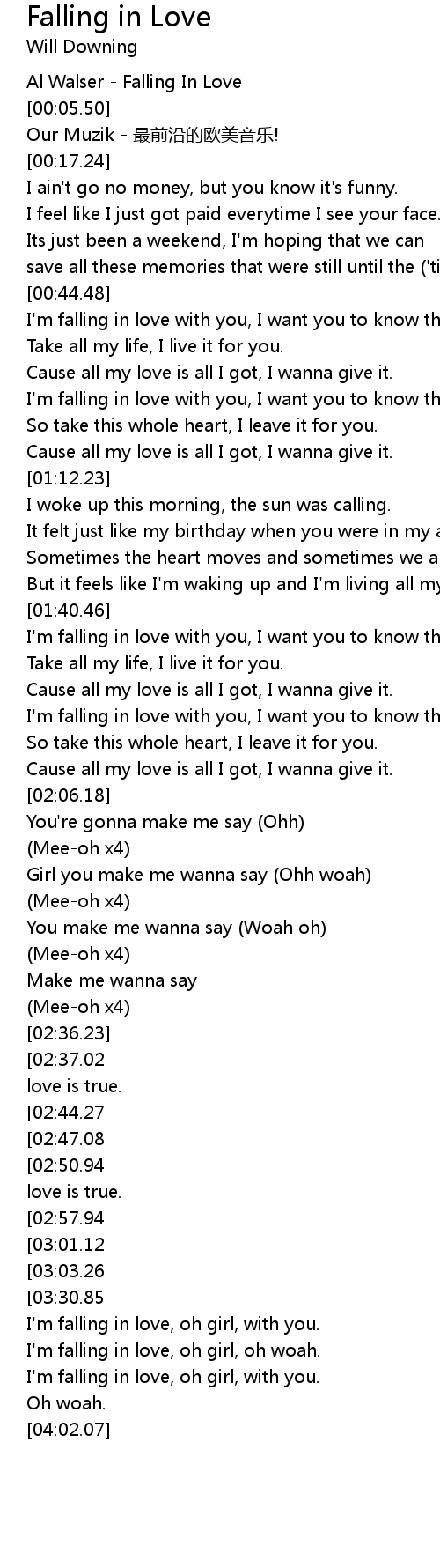 | [03:18.70][02:50.94] | I'm falling in love with you, I want you to know that my love is true. |
