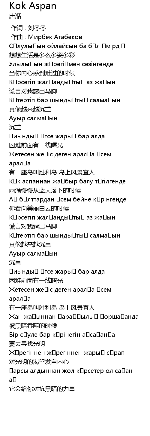 | [00:01.000] | 作曲 : Мирбек Атабеков |
