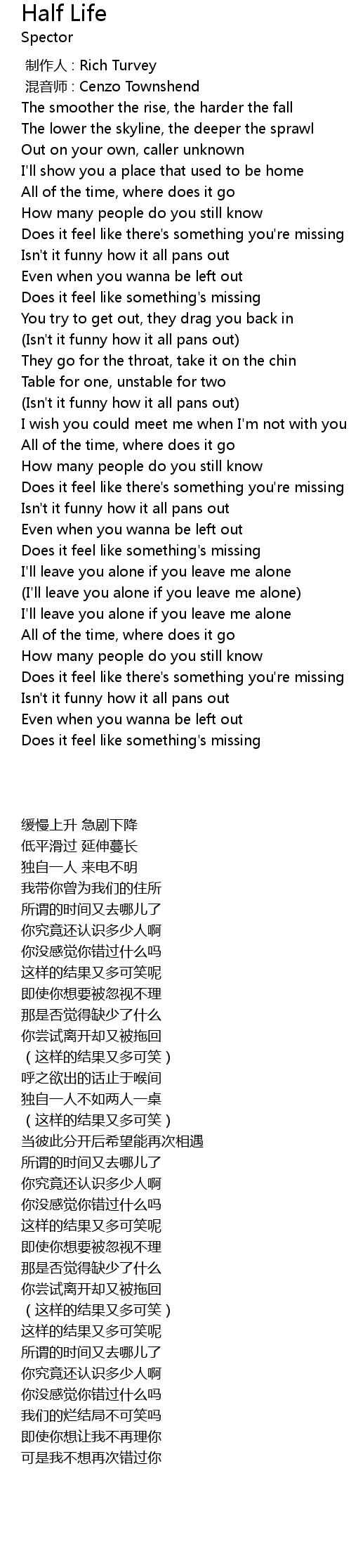 | [00:52.37] | Does it feel like there' s something you' re missing |