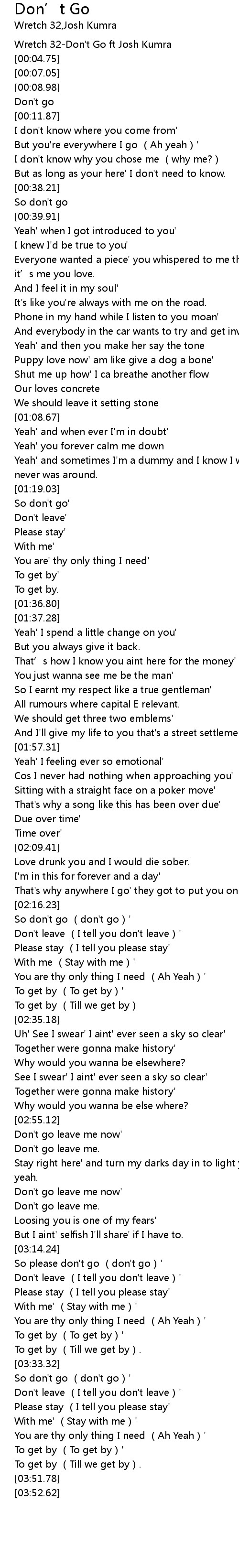 | [00:02.35] | Wretch 32-Don't Go ft Josh Kumra |