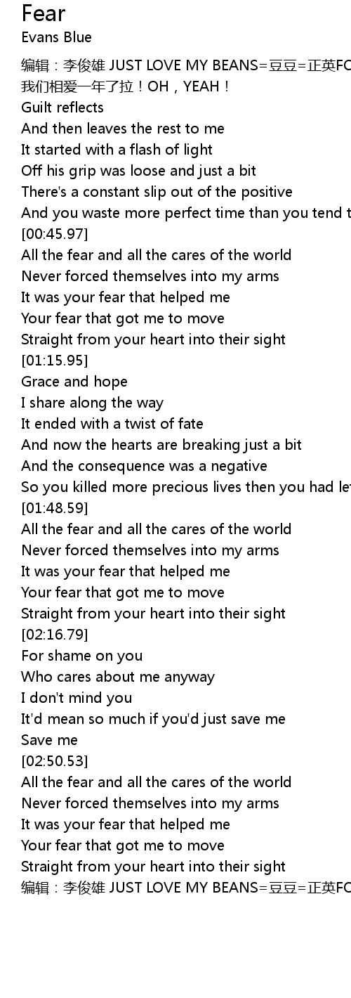 | [00:46.38] | All the fear and all the cares of the world |