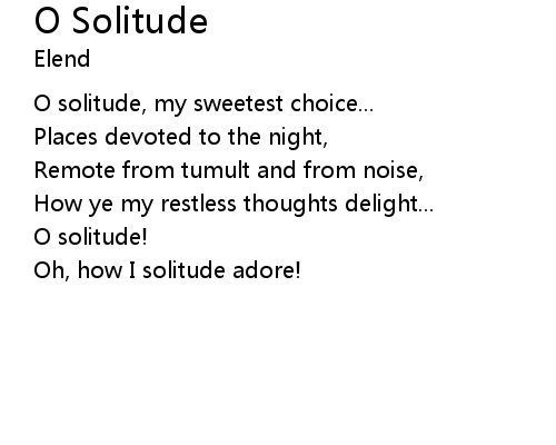 O solitude, my sweetest choice...