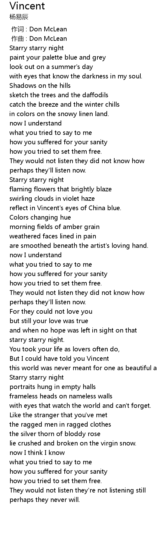 | [00:00.000] | 作词 : Don McLean |