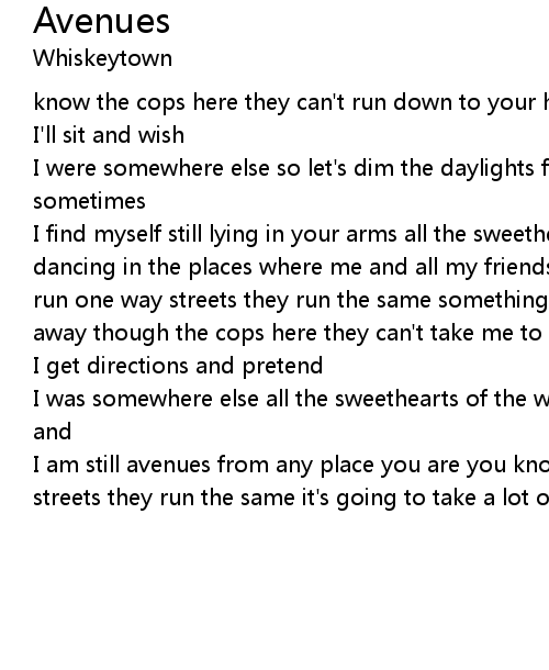 I find myself still lying in your arms all the sweethearts of the world are out dancing in the places where me and all my friends go to hide our faces avenues run one way streets they run the same something in the air here still keeps me away though the cops here they can't take me to your house |