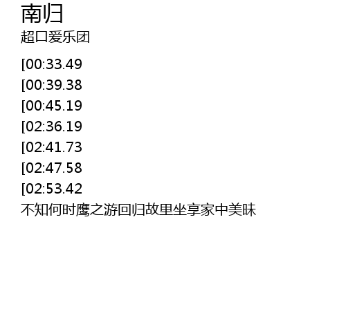 | [01:20.02] | 不知何时鹰之游回归故里坐享家中美昧 |