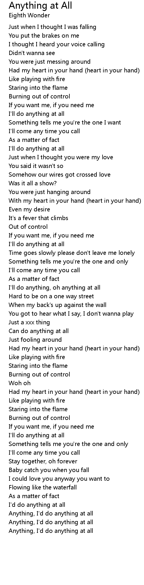 I'll do anything, oh anything at all |
