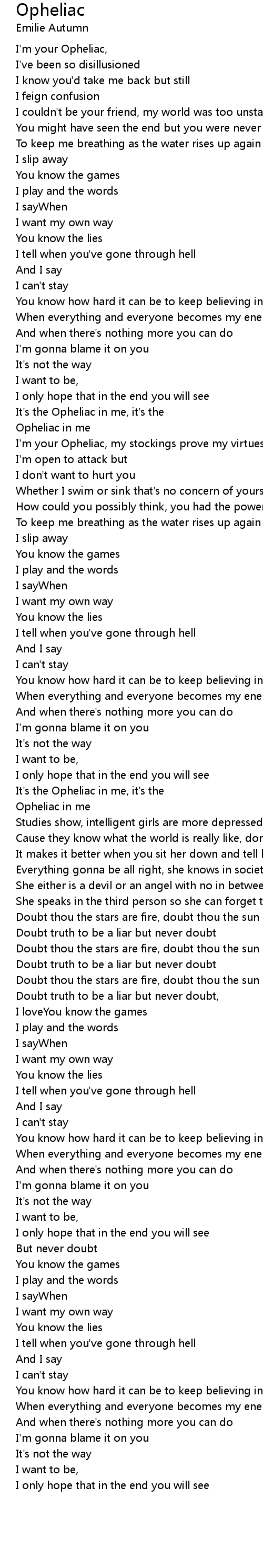 It's the Opheliac in me, it's the |