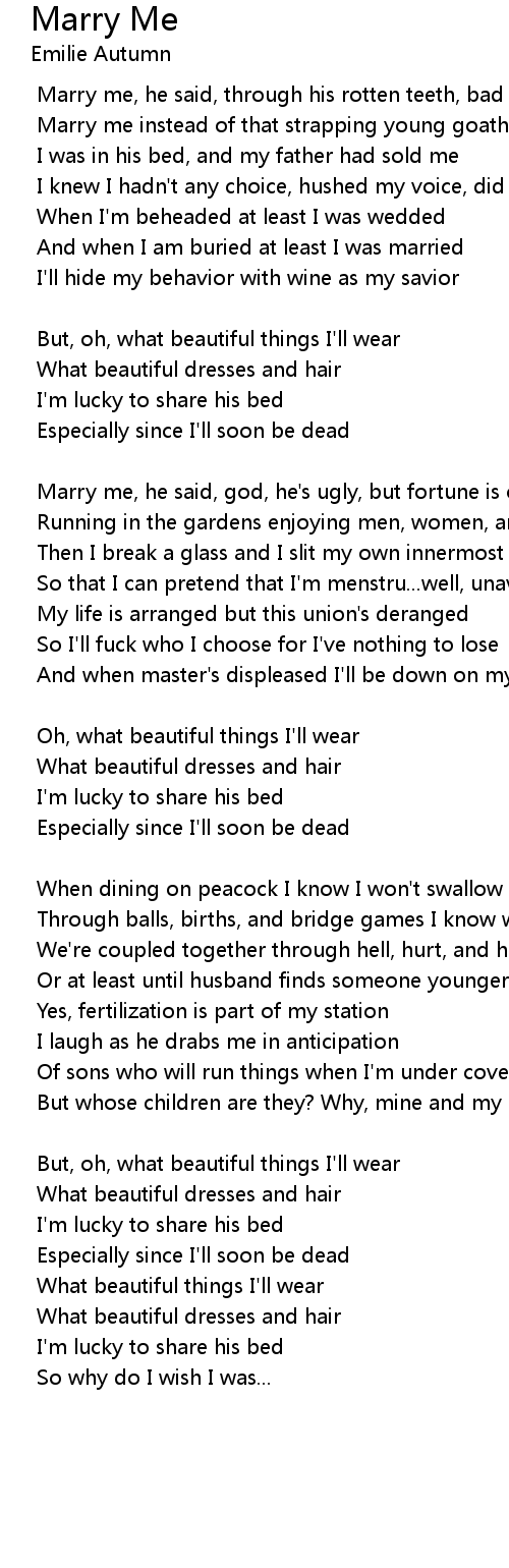 | Marry me, he said, through his rotten teeth, bad breath, and then | |