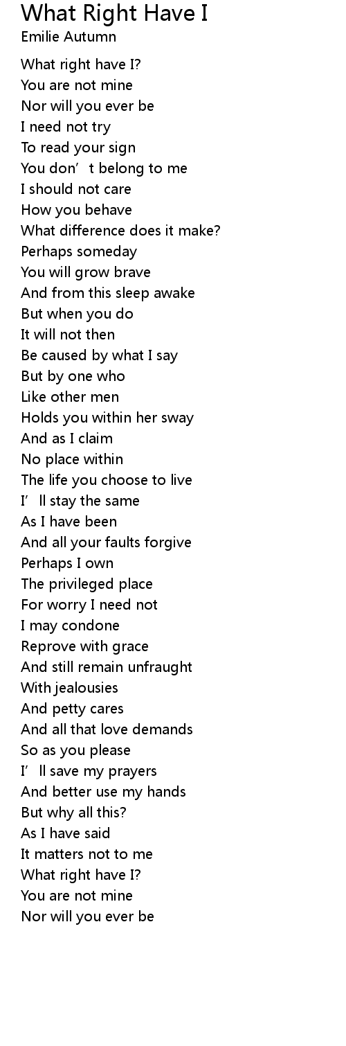 | 歌曲 | What Right Have I |