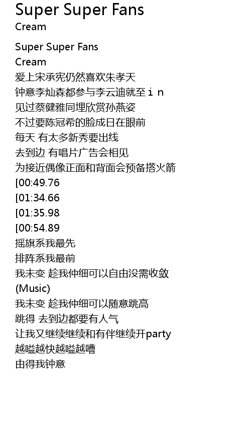 | [01:31.90][00:49.76] | (you are Super Super Fans) |