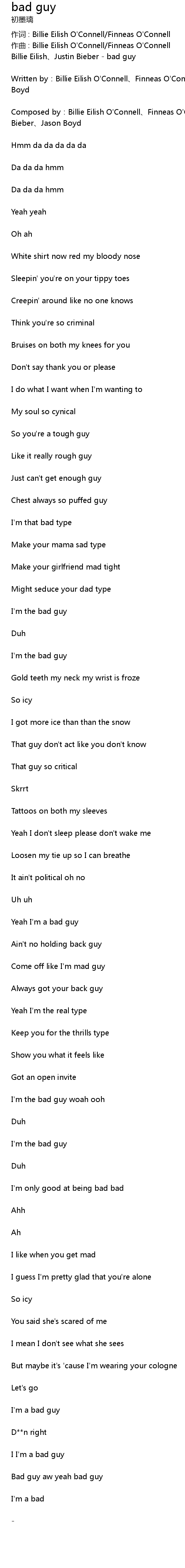 | 作词 : Billie Eilish O'Connell/Finneas O'Connell | |
