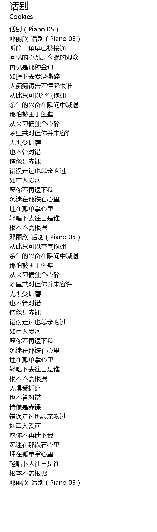 | [03:53.07] | 邓丽欣-话别(Piano 05) |