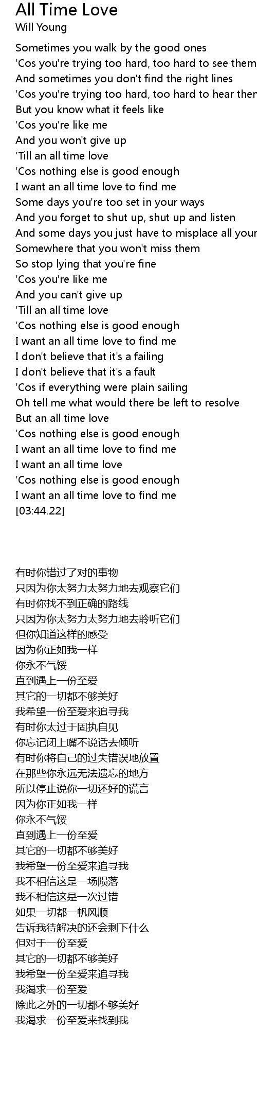 I want an all time love |