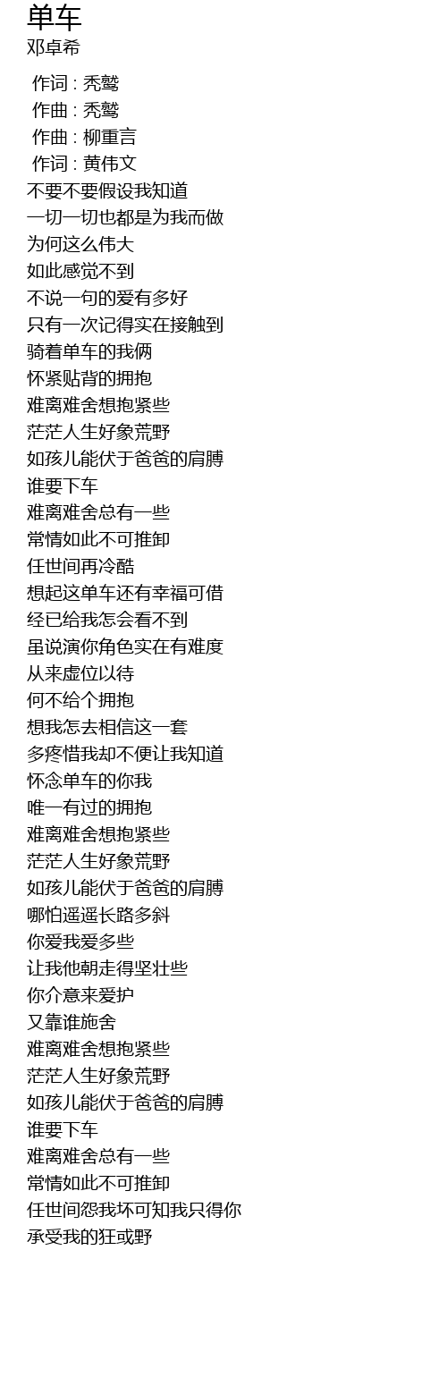 | [01:18.531] | 想起这单车还有幸福可借 |