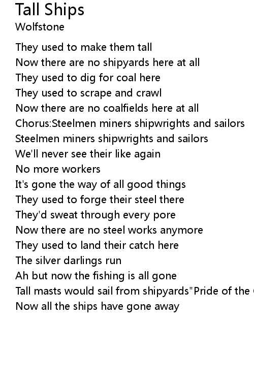 Chorus:Steelmen miners shipwrights and sailors |
