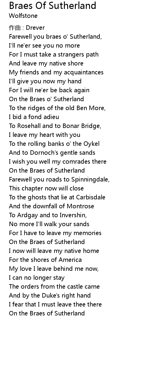 | 歌曲 | Braes Of Sutherland |