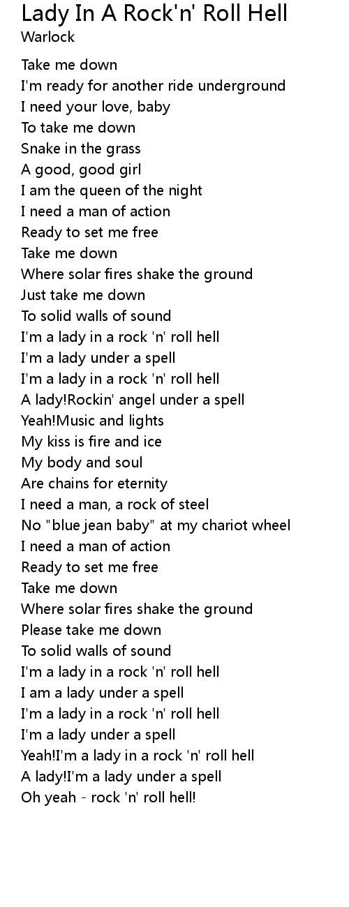 Yeah!I'm a lady in a rock 'n' roll hell |