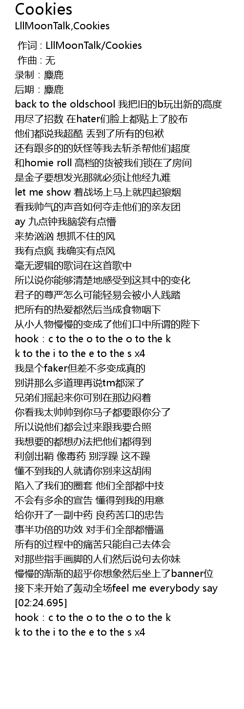 | [00:00.000] | zuo ci : LllMoonTalk Cookies |