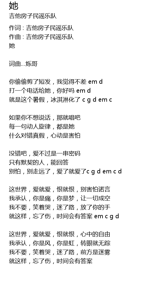 | 别怕,别走远了,爱了就爱了c g d em c d | |