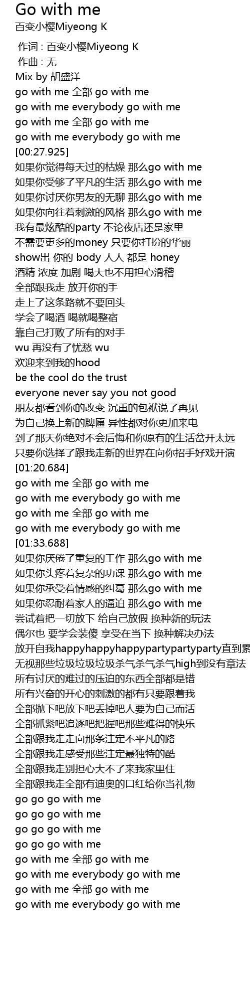 | [01:27.939] | go with me quán bù go with me |