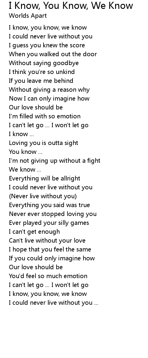 I could never live without you |