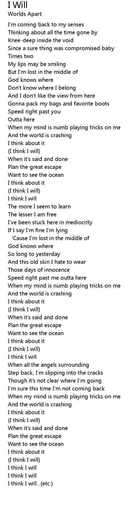 | 歌曲 | I Will |
