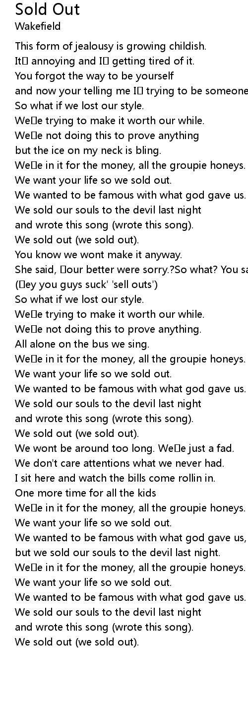 | We want your life so we sold out. | |