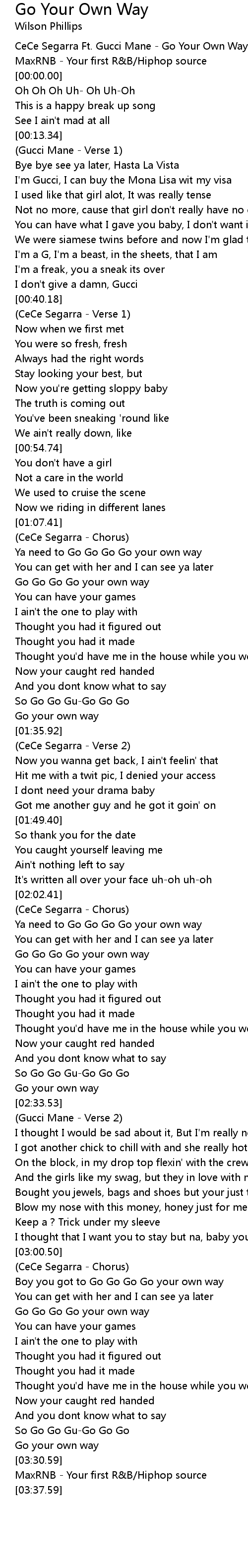 CeCe Segarra Ft. Gucci Mane - Go Your Own Way |