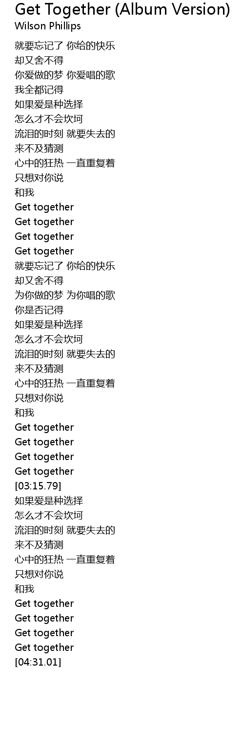 | [04:23.48] | Get together |