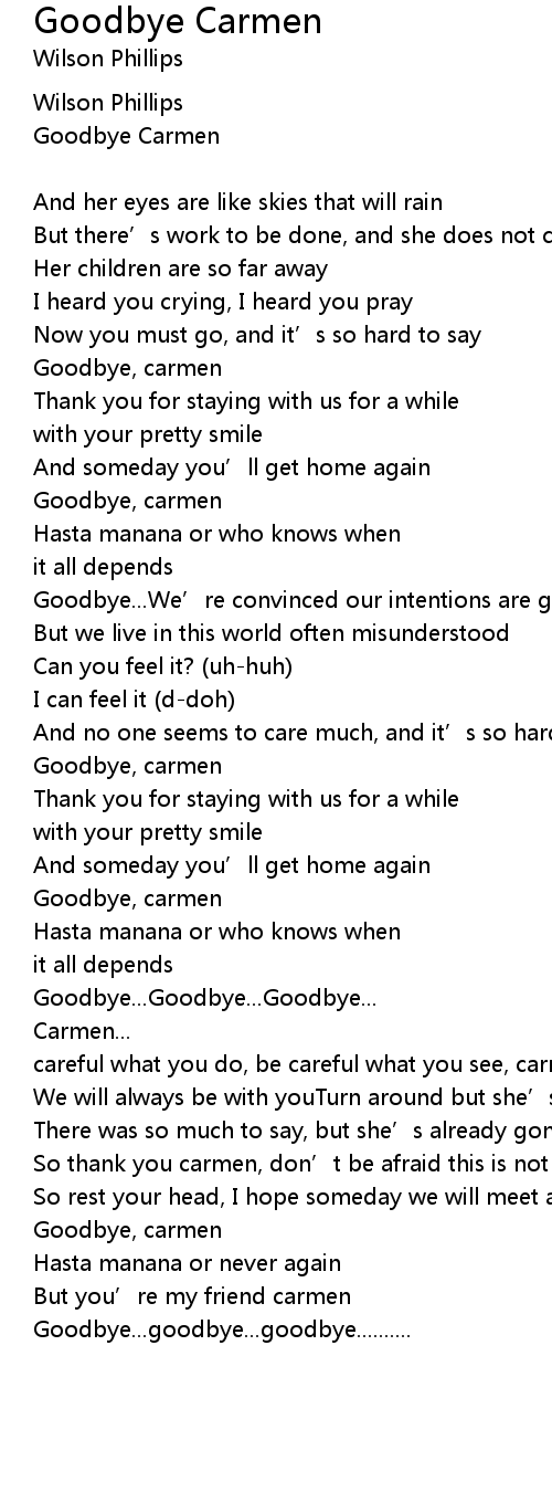 | And no one seems to care much, and it' s so hard to sayGoodbye, carmen | |