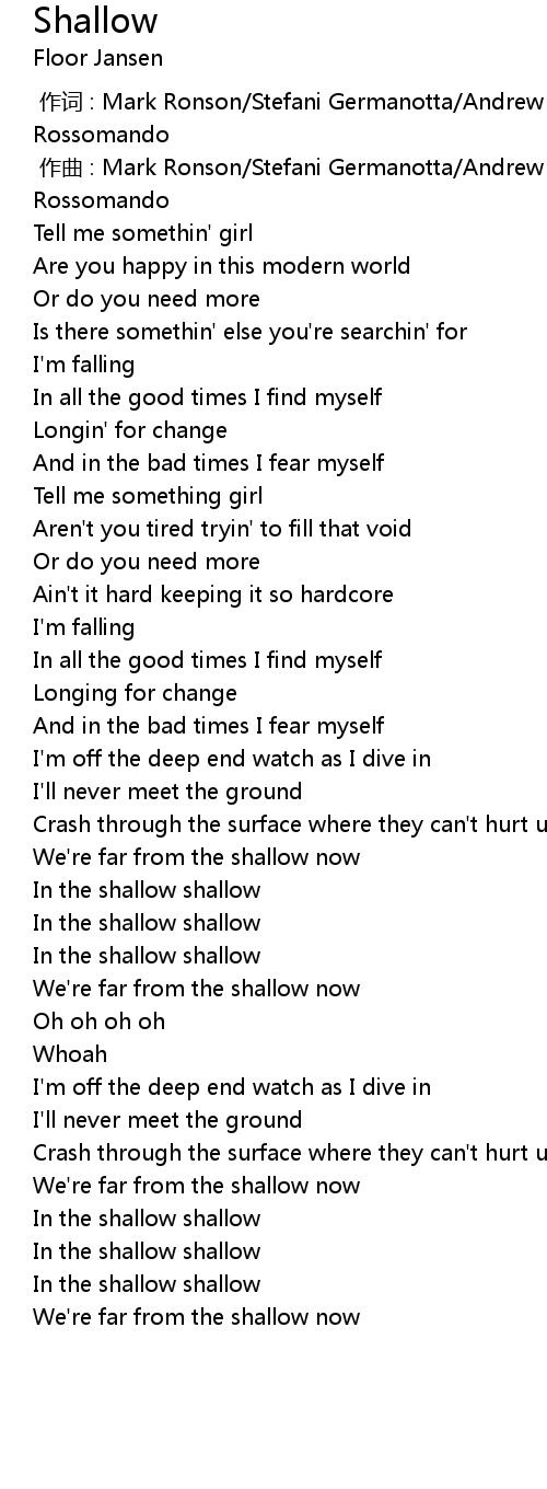 | [00:01.00] | 作曲 : Mark Ronson/Stefani Germanotta/Andrew Wyatt/Anthony Rossomando |