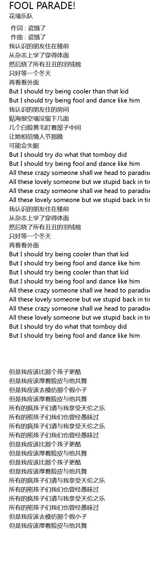 | 歌曲 | FOOL PARADE! |