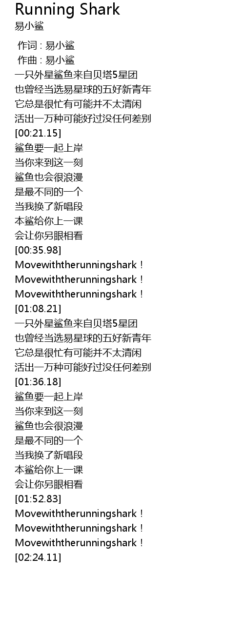| [02:22.72] | Movewiththerunningshark! |