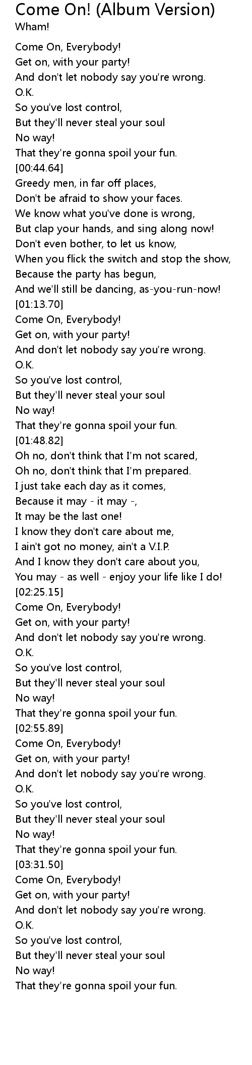 | [03:02.88] | Come On, Everybody! |