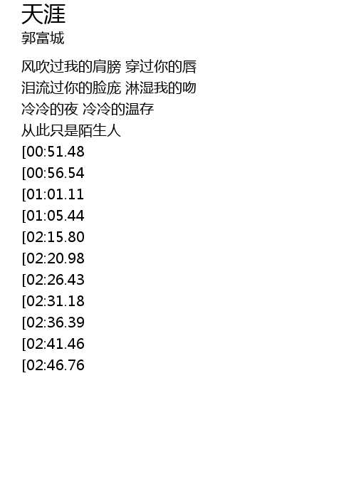 | [00:45.85] | 从此只是陌生人 |