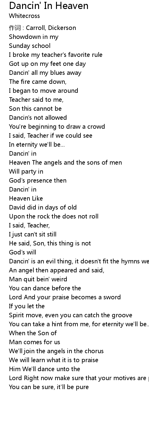 | Dancin' is an evil thing, it doesn' t fit the hymns we sing | |