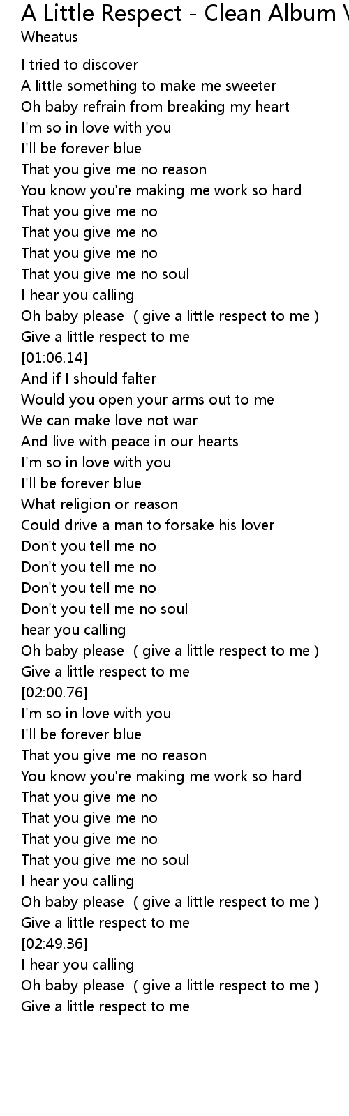 | [00:48.78] | Oh baby please give a little respect to me |