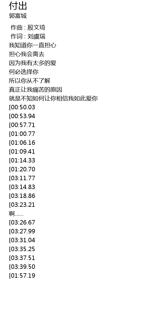 | [04:04.59][03:27.99][01:38.18] | ài shì fù chū bú shì zhàn yǒu |