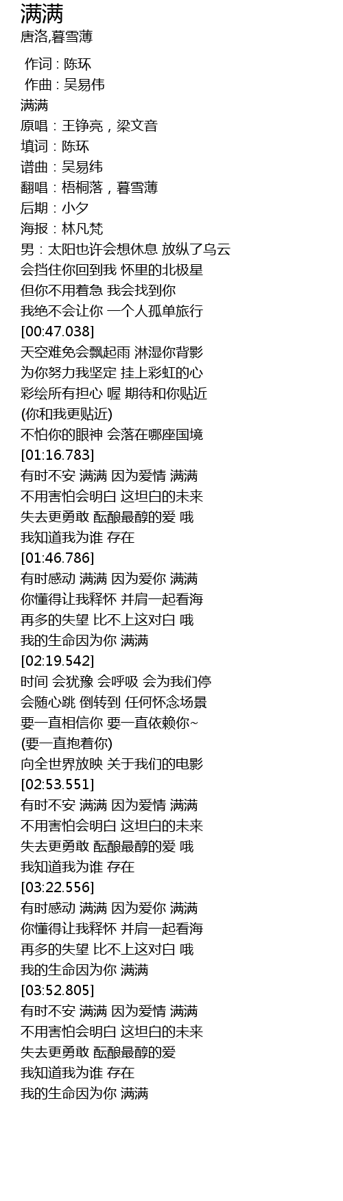 | [01:48.041] | 有时感动 满满 因为爱你 满满 |