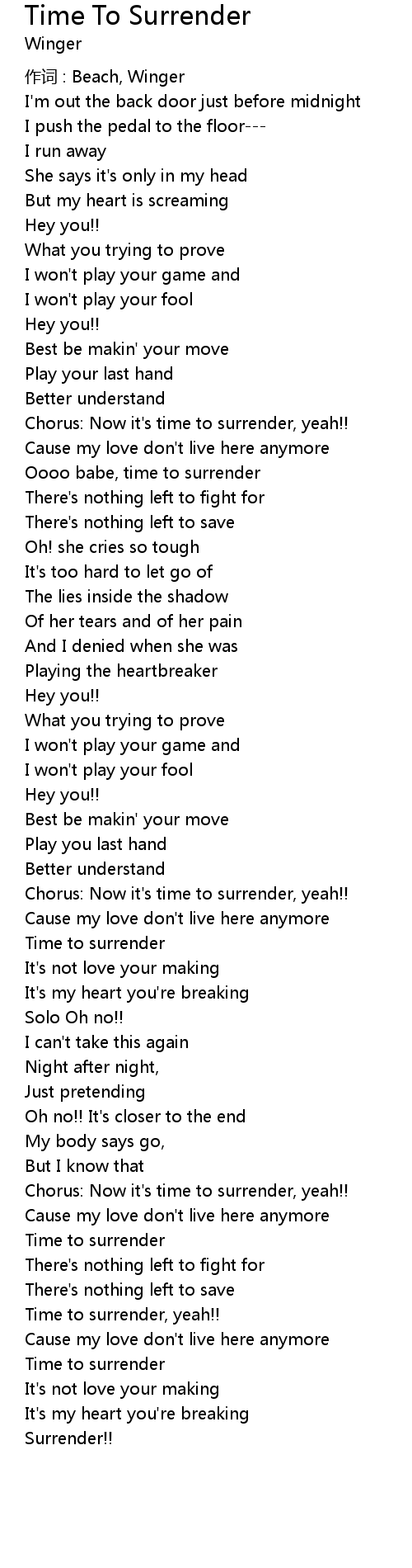 | Chorus: Now it' s time to surrender, yeah!! | |