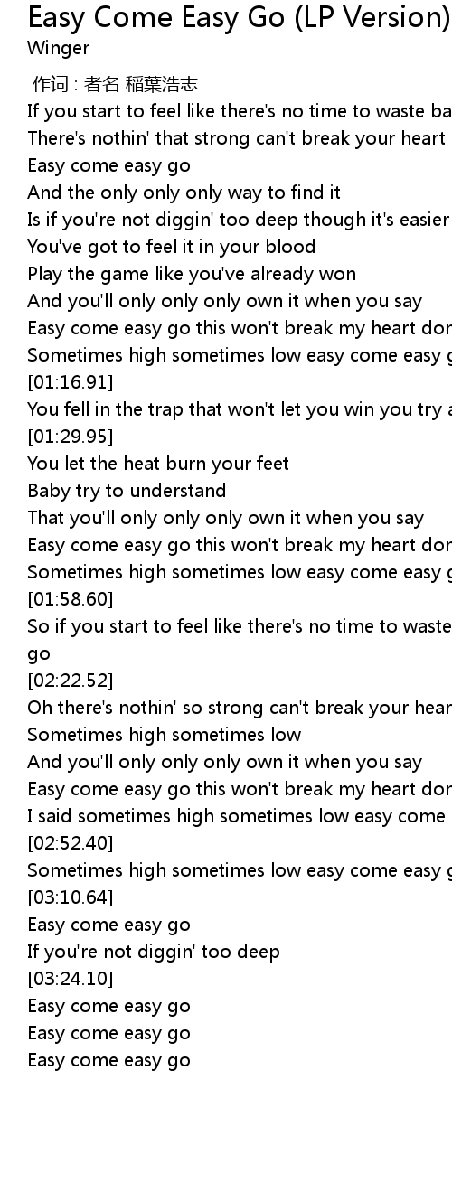 | [02:59.82] | Sometimes high sometimes low easy come easy go let' s go |