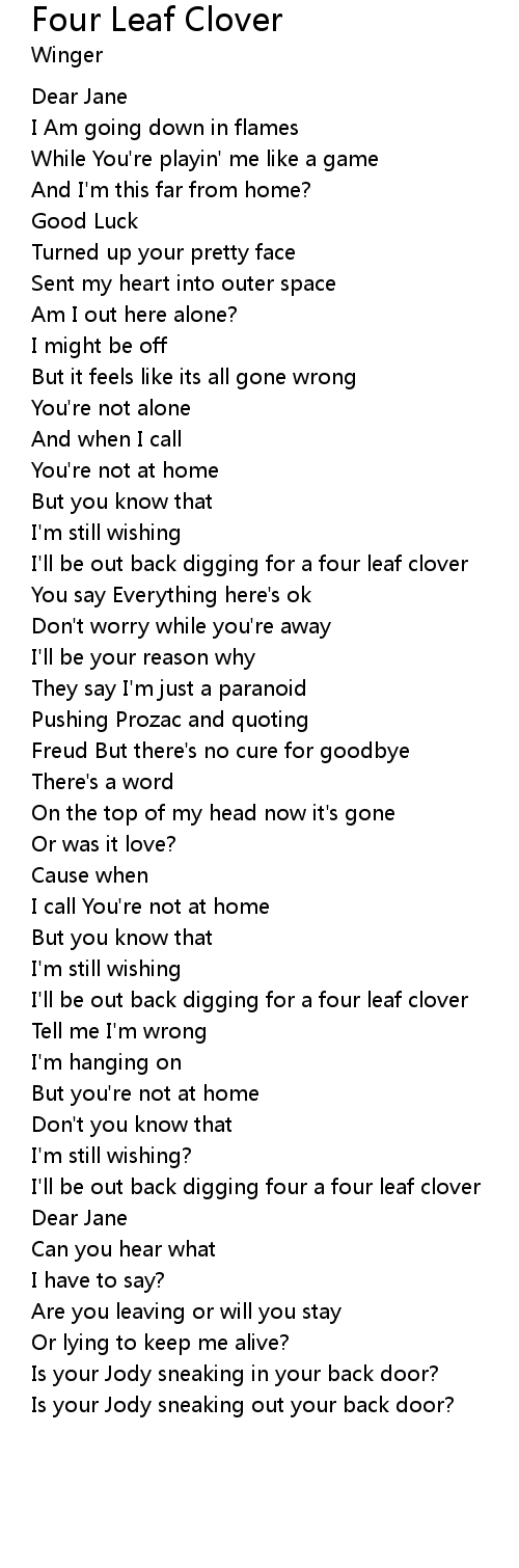 | I'll be out back digging four a four leaf clover | |