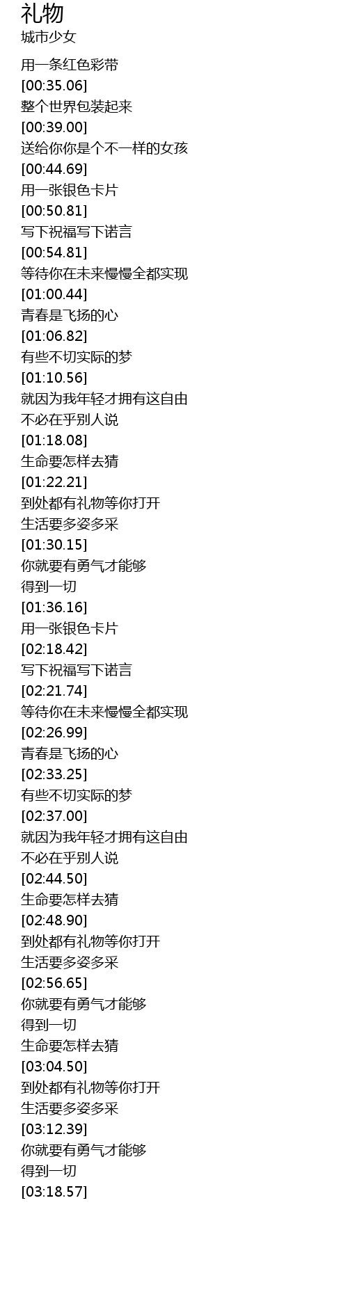 | [03:05.25] | 到处都有礼物等你打开 |