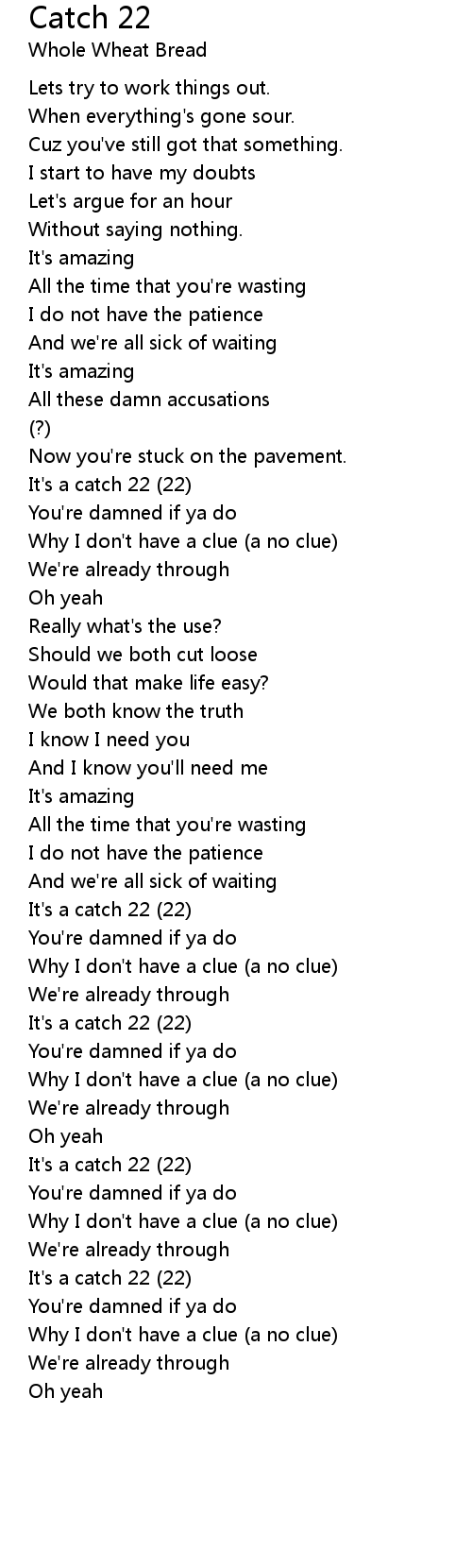 Catch 22 歌词