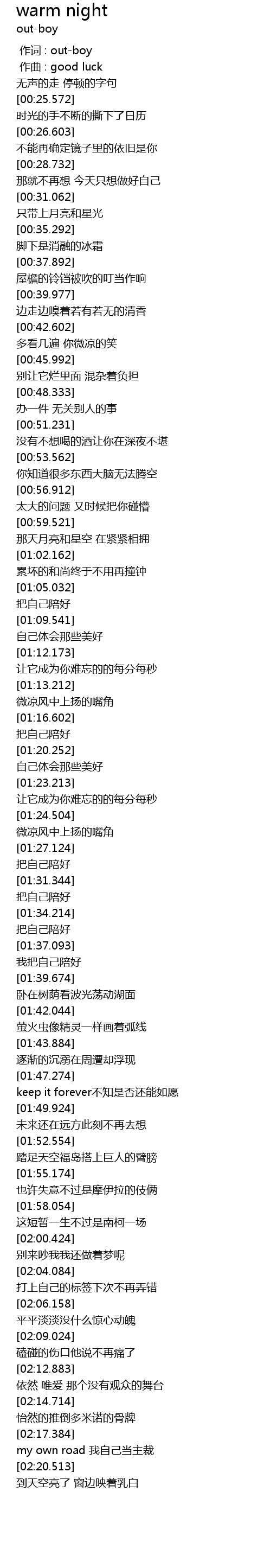 | [00:00.000] | 作词 : out-boy |