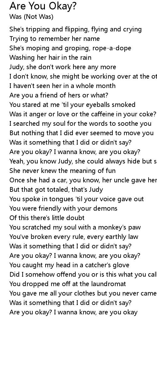 Are you okay? I wanna know, are you okay? |