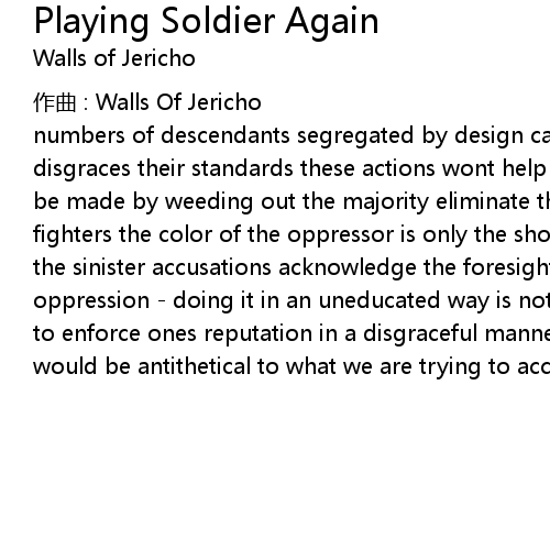 | numbers of descendants segregated by design caught up in a purpose that disgraces their standards these actions wont help us end our fight progress cant be made by weeding out the majority eliminate the source but do not destroy the fighters the color of the oppressor is only the shortcoming of the disaster end the sinister accusations acknowledge the foresight in which we hold to end oppression - doing it in an uneducated way is not going to end it it’s going to enforce ones reputation in a disgraceful manner to segregate us by color would be antithetical to what we are trying to accomplish |