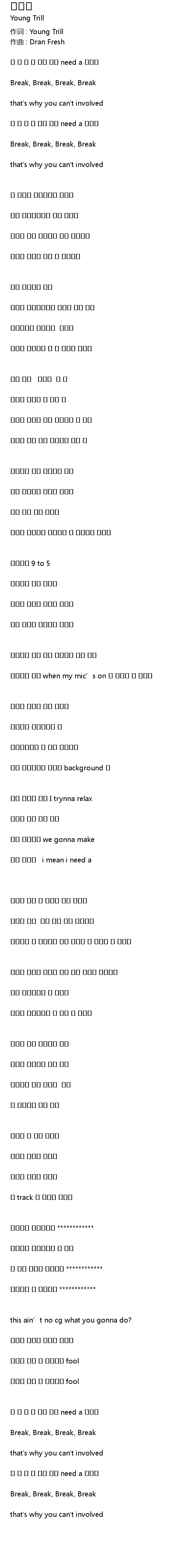 作词 : Young Trill |